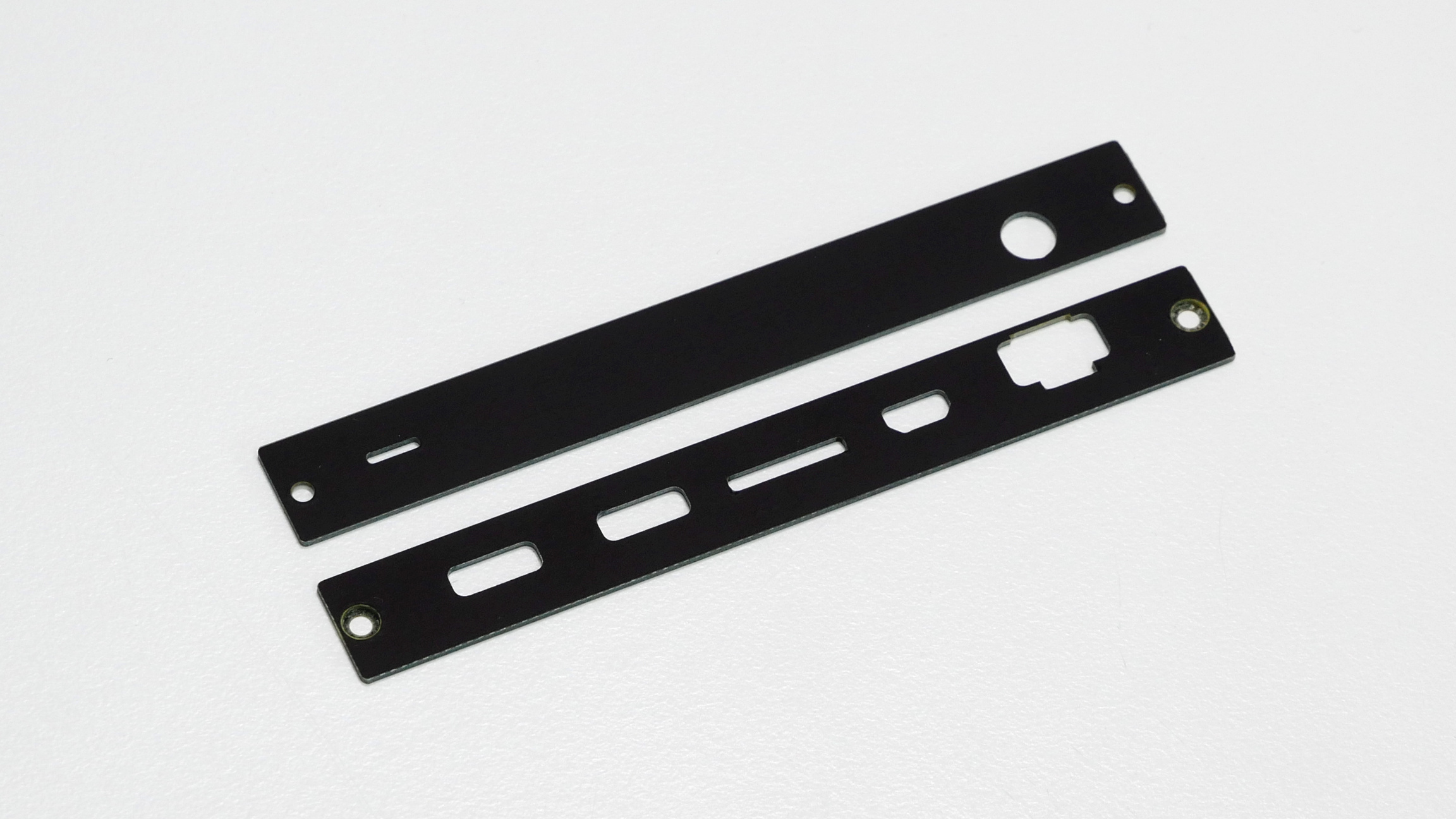 These black port covers are two pieces of PCB material that cover the side openings of the MNT Pocket Reform laptop.